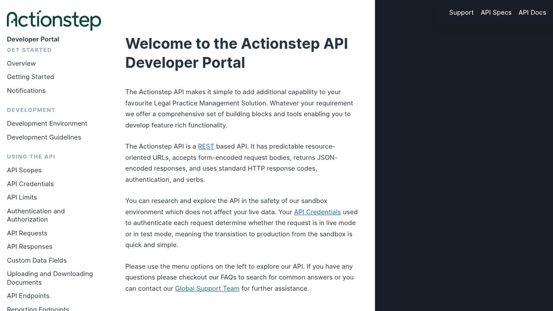 Custom code against the Actionstep REST API is what an engineer means when they talk about automation in the Actionstep context. The REST API (documented at docs.actionstep.com) lets you read, write, query, and subscribe to changes on most Actionstep entities. Anything in the Actionstep UI is mostly reachable via the API, plus things you cannot do in the UI: cross-system integrations, bulk transformations, custom reporting, specialised conditional logic that exceeds what Step transitions can express.