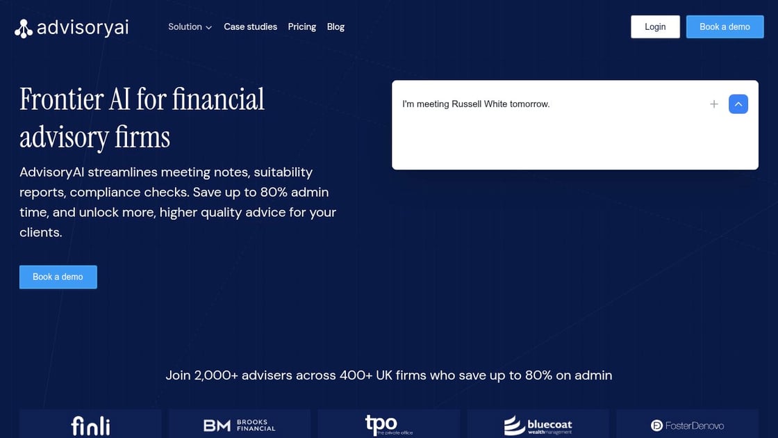 Time saved: 8-15 minutes per meeting. An active adviser has 4-8 client meetings per week.